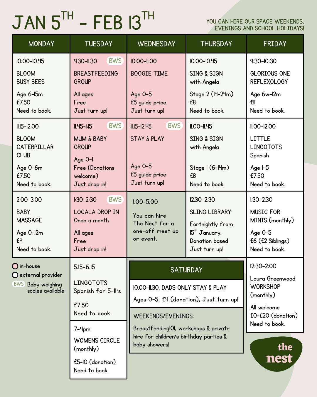 Please always check our instagram before you set off for a class, just in case of any last-minute changes (illness etc).